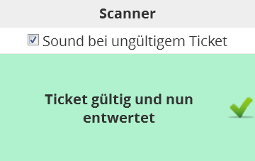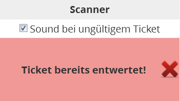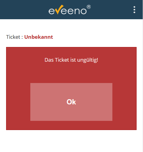 - Es wird angezeigt, wenn ein Ticket gefälscht, für eine andere Veranstaltung gebucht oder bereits entwertet ist.