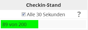 - Es wird laufend angezeigt, wie viele Gäste aktuell eingecheckt sind. Bei mehreren Check-In- und Check-Out-Stationen kann der aktuelle Stand alle 30 Sekunden vom Server abgefragt werden.