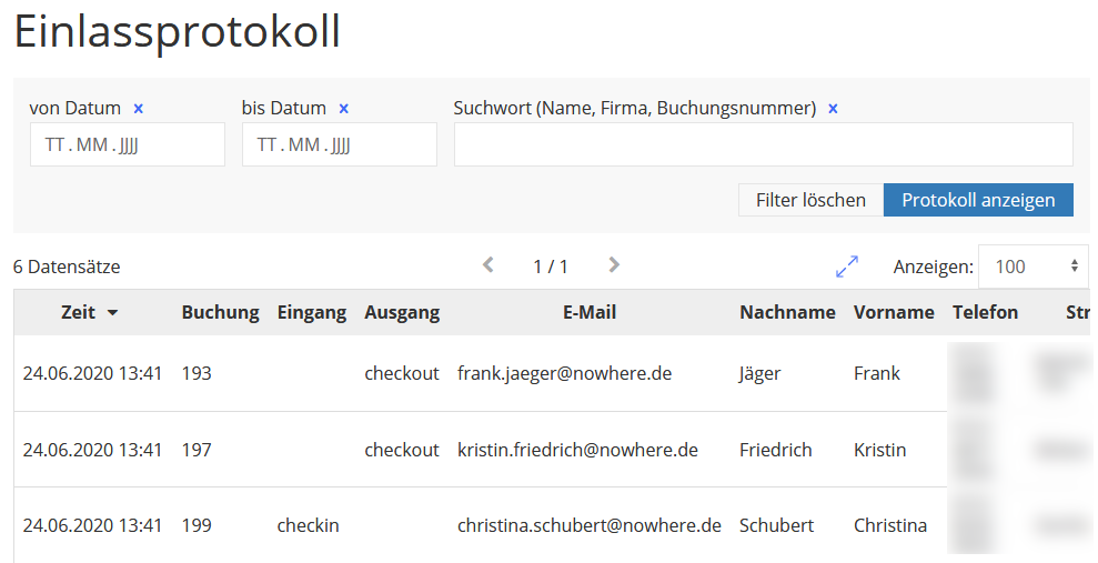Die entsprechenden Daten finden Sie innerhalb der Aufbewahrungsfristen unter Buchungen > Protokoll. Diese Liste können Sie nach Tagen oder Buchungen filtern.