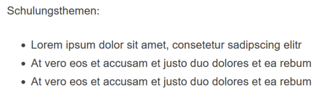 Dadurch können Dopplungen vermieden werden. Beispielsweise legen Sie Schulungsinhalte einmal in der Variable „Inhalte“ fest, und fügen die Variable dann in der Form „FIED{Inhalte}“ sowohl im PDF-Design für das Zertifikat als auch auf im Registrierungsformular ein. Aus „FIED{Inhalte}“ wird dann der Block: