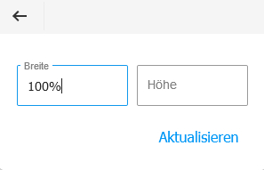 Sobald ein Bild eingefügt wurde, haben Sie verschiedene weitere Optionen. Klicken Sie dazu auf das Bild. Im dort angezeigten Menü können Sie z.B. die Bildgröße ändern. Wenn Sie das Bild automatisch an die zur Verfügung stehende Breite anpassen möchten, wählen Sie für die Breite „100%“ und lassen Sie das Feld für die Höhenangabe leer. Somit wird das Bild auf allen Bildschirmgrößen optimal dargestellt.
