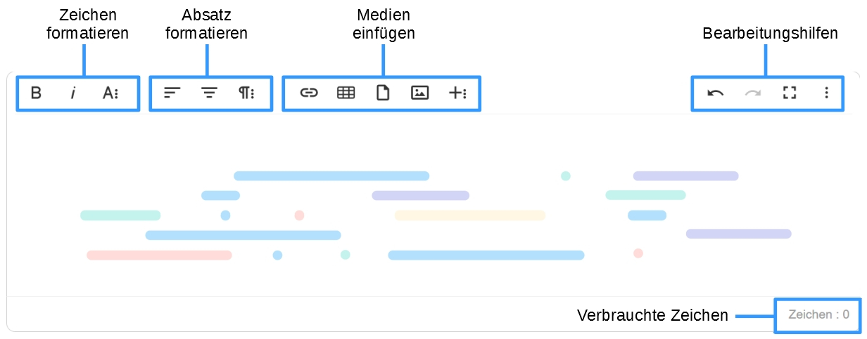 In manchen Fällen ist die Anzahl der zur Verfügung stehenden Zeichen begrenzt. Sie sehen dann in der unteren rechten Ecke des Editors, wie viele Zeichen noch verbleiben.