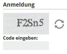 Um zu verhindern, dass Sie automatische, maschinelle Anmeldungen für Ihre Veranstaltung erhalten, kann am Ende des Formulars ein Captcha-Code eingeblendet werden. Der Teilnehmer muss dann die darauf abgebildeten Zeichen in ein Feld eingeben, bevor er das ausgefüllte Formular übermitteln kann. Diese Vorgehensweise erschwert es Maschinen, eine Buchung vorzunehmen. Die entsprechenden Optionen finden Sie unter Einstellungen > Absenderprüfung. Bitte beachten Sie, dass eine barrierefreie Darstellung der Eventseite ggf. ohne Captcha geeigneter ist.